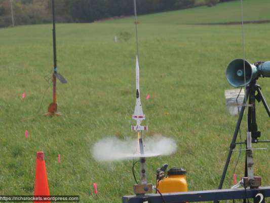 The cardstock Mini Satellite Interceptor also hadn’t flown in quite some time. I fed it the usual 1/2A3-2T and it liked it.