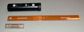 Below are pictures of the camera by itself and next to a 12-inch ruler and a standard 18mm C6 rocket motor for comparison.