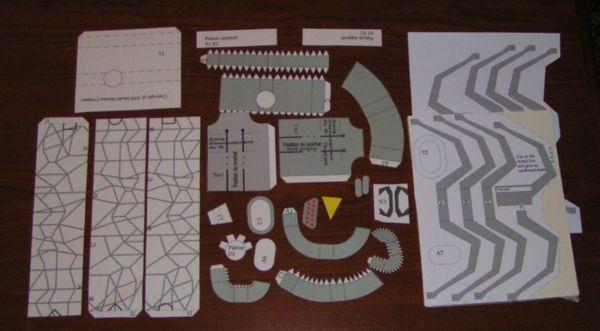 The instructions are printed on 7 pages of 8½ x 11" paper. The primary feature of the instructions are color 3D pictures. The instructions include a general guide for folding and forming paper parts. There is also a diagram showing all of the parts from a top, side and front views. This is an important addition to the instructions.