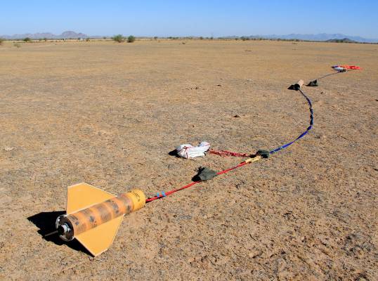 Awesome 1st flight of the El 1-2-3 Roc. Originally I was going to fly it in sequence but after thinking about it, I decided to reverse the order. Dual deploy configuration with drogue at apogee and main at 1300ft. Both events worked great and rocket recovered successfully southeast of launch pad about 1/4 mile.