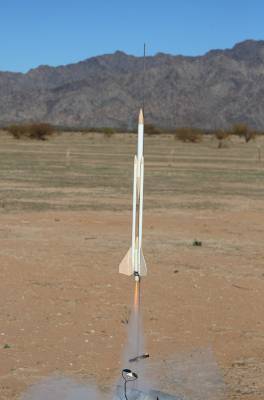 1st flight of the rocket. Nice boost off the pad - nearly perfectly straight. Bit early on the ejection but 3 seconds is it for this motor. Perfect recovery.