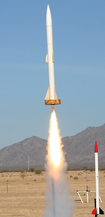 1st flight of my Upscale Solar Flare as a single-stage. 9th flight in our A-K contest. This is where I have to start over. Ejection charge fired but failed to separate rocket. Desert Dart. :(