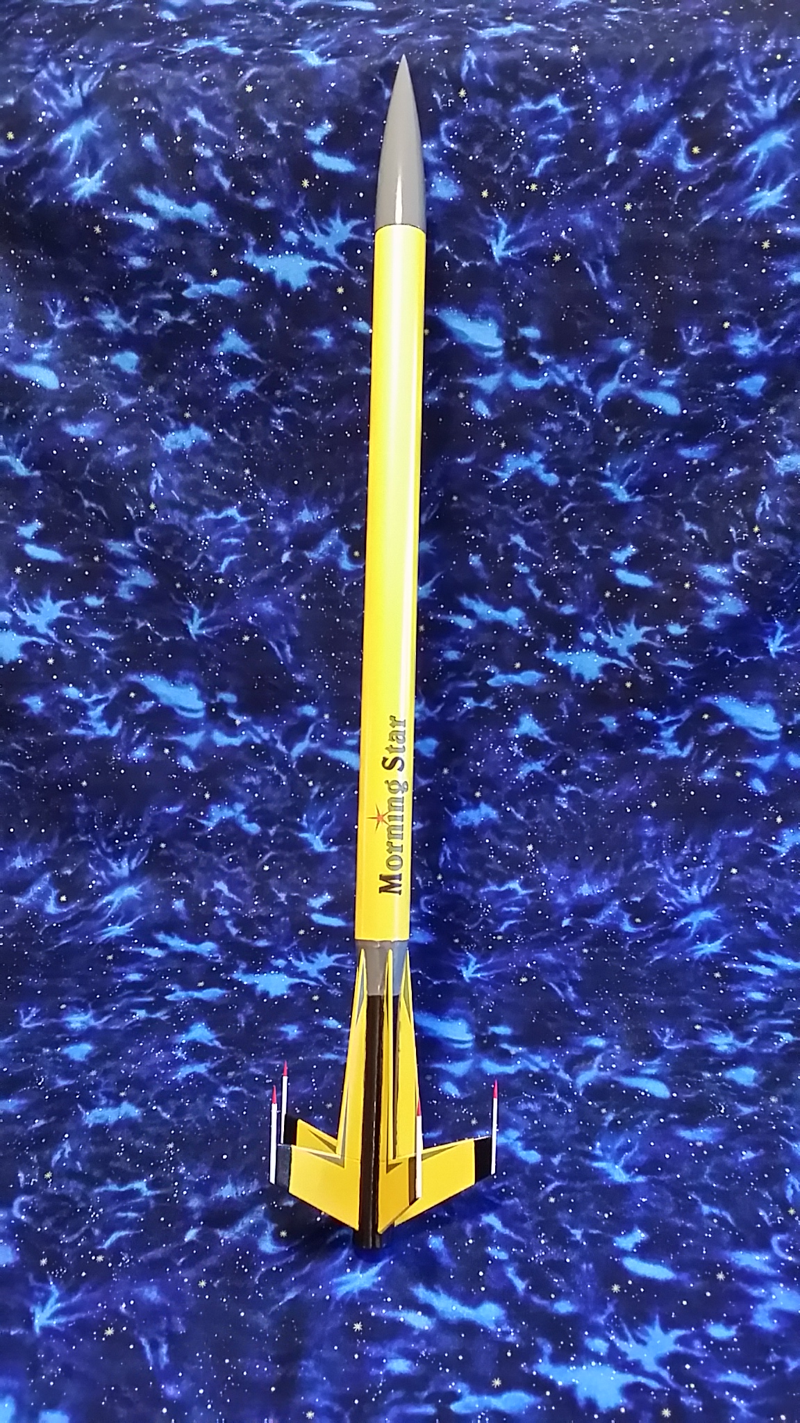 Brief: The Morning Star is a nice looking futuristic design from FlisKits that still looks like a traditional rocket. It is not trying to be an extra from a sci-fi series. It's simple but cool. Construction: Construction began by my locating a spent 24mm casing and marking off 1/4" from one end. A ring of white glue was then applied inside the BT-50 motor tube using a swab ...