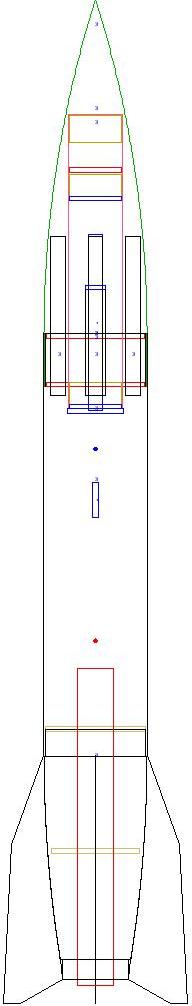 This is Curtis' 11.5" V2 kit with the airframe left at 48". I originally modified it to deploy the main chute from a 6" tube in the rather volumnous nosecone as shown.