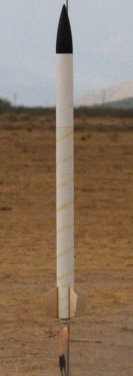 Great motor for this rocket. Quick boost off the pad. Altitude some 322 feet higher than the average of my three NARTREK Gold qualification flights on E9-6 on May 10 2008.