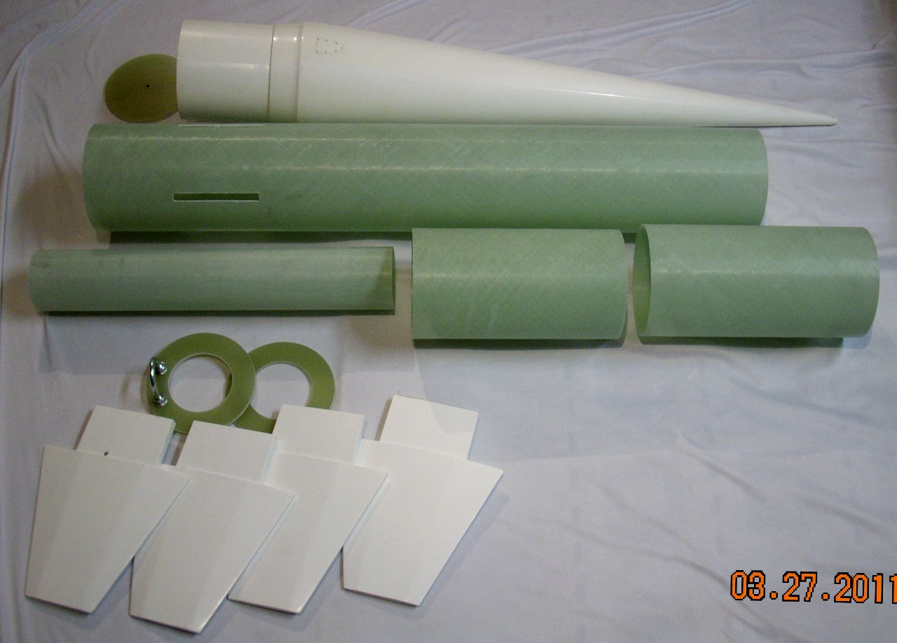 This kit is the 1/3 scale model of NASA's Nike Smoke. The tubing is 5.5 inch diameter G-10 fiberglass. The Nike Smoke was a rocket that NASA would use to determine windspeed at high altitudes before they would launch the Saturn V moon rockets. Components This review covers the "old" kit, not the new one. The old kit had a prefab fiberglass fin can rather than ...