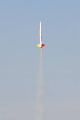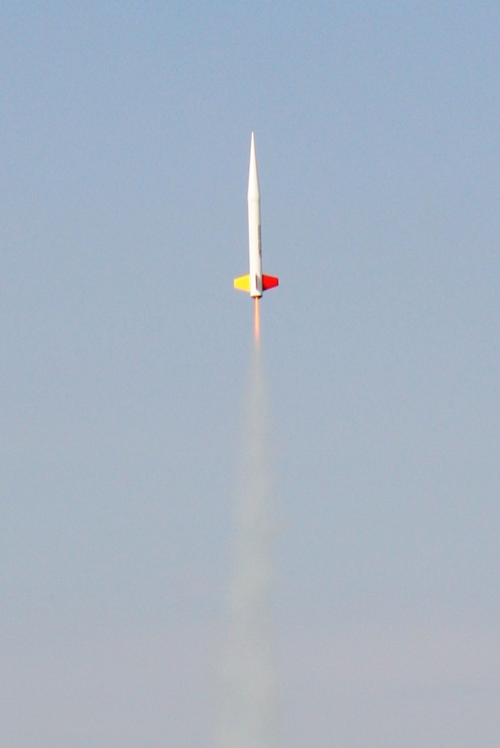 I built this BT-60 based Nike Smoke when I found that Semroc was offering the nose cone in this size. This makes for a nice, portable sized version that can be flown on smaller fields that the 3" PSII version cannot. Nose cone is balsa, the fins are basswood and proper scale. This model needed about 5/8 oz of ballast in the nose to be stable.