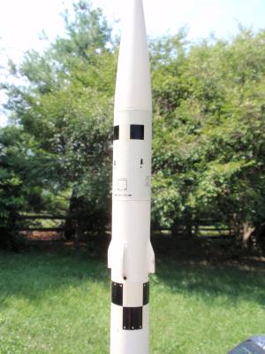 The Nike-X: One of my favorite '70s kits. This design was inspired by air defense missiles. The real Nike-X project was begun, but cancelled before it saw the light of day; this is only a suggestion to what the real one would have looked like. The pseudo-second-stage fins and the great Black & White decals are the highlight of the design.