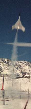 Preparation for flight is simple - just tape in the motor - an engine hook would be nice but is not necessary, then wrap the trash-bag streamer around the pod and insert the pod in the glider - a plastic coated paper clip holds the wing down during boost. This model is different than the "normal" boost glider in that the entire back half of the wing elevates for glide. It looks strange, but works very well. The model looks kind of clunky with the square edges of the foam core and I was prepared for a disappointing glide. I was surprised at how well it glided. This seems to be very forgiving of trim - it glides well enough even if not trimmed "perfectly".