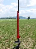 It’s first flight was at the 2012 NERRF in Pine Island NY. After prepping the rocket for it’s first flight I loaded a CTI G60 Red and carried it out to the pad. After a short wait it was my turn. My rocket leaped off the pad with authority. It’s first flight was picture perfect. It went straight up with a perfect apogee separation and at the set 700’, the main popped out to gently set it down. I was surprised at the altitude it achieved on the small G, the altimeter beeped out 1722’.