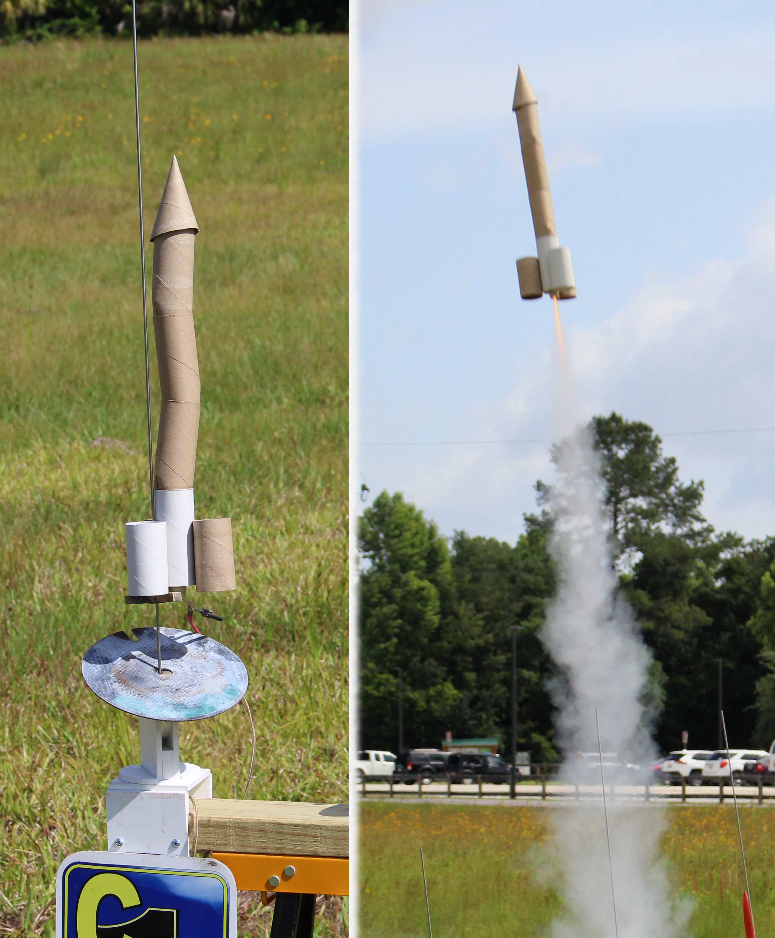 At ejection the elastic shock cord broke! The nose cone and chute floated away, the main body landed without a dent.