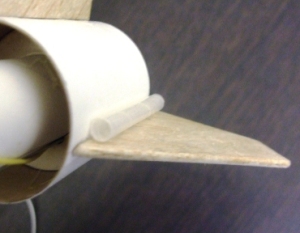 The instructions call for the streamer to be added one third of the way down the shock cord so the body hangs below the nosecone.