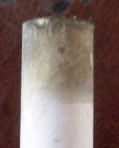 The rocket leaves the pad quickly and just keeps on climbing until it disappears, I was able to track it for a while with the delay smoke. I spent half an hour wandering around in the scrub and the neighbouring golf course but to no joy. Packing up, I headed back to my lab, luckily 500 meters from the pad on the way back I found the rocket. There is now more charring to the shock cord.