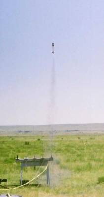 This is the fastest I've ever seen a rocket leave the pad. Small rocket, big motor. Long walk.
