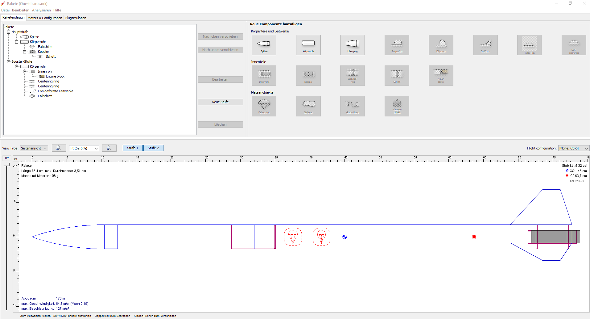 To use the design file above, you need a copy of OpenRocket, a rocket design and simulation program.