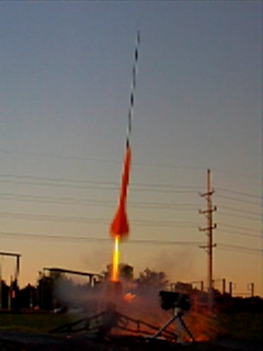 Good flight. Rocket arced to the southeast. Visible throughout. Streamer deployed and opened. Rocket landed about 100 yards southeast of the launch site. Daniel recovered. One of the fins broke off the body tube and will need to be glued back on before the next flight.