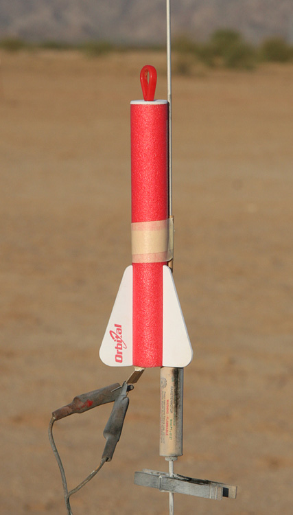 Just a fun flight with this foamie I got at the Orbital launch the previous week. No motor tube...just shoved the motor in. A bit unstable and the foam melted from ejection charge. Retired.