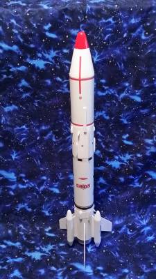 This rocket has a lot of little detail pieces. It has a wrap section and some small wooden bits that had to be shaped individually. I took my time on this to ensure that everything was done properly. I even hand-painted the end of the nose cone in order to prevent the paint from bleeding through the masking. The end result: I think this rocket looks amazing!