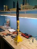 This is a kit-bashed Aerotech Barracuda. It about half size and was originally designed as a duel-deploy rocket. But during testing of the ejection charges, the shock cord got so singed and burnt, I don't feel safe flying it. It will be a nice display model. I am going to rebuild this project with some lessons learned incorporated in to the next build!