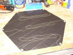 Pemberton Technologies Kraken I assume the parachute is a purchased item that is included with the kit. The assembly instructions don't have any of the "funny" comments like the rest of the instructions. I varied from the instructions some what on the assembly of the parachute. It said to cut the shroud line into six equal parts, attach each to the parasheet and then tie the six together. I cut the shroud line into three equal lengths and attached three loops to the parasheet. I then pulled the three together and looped them through a snap swivel.