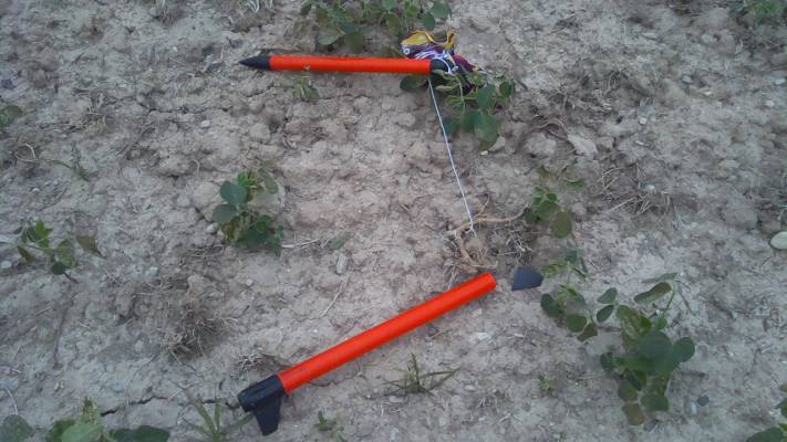 Time: 7:41 pm. Temperature: 76 degrees. Wind variable to 20 mph from the east. Cloudy. Launched with Altimeter Two in the payload section. High flight for Penetrator. Parachute deployed and opened, but came down very quickly. Daniel recovered about 110 yards from the launch site (285 degrees from north). One fin had fallen off, but the fin broke at the joint and can be repaired. Altimeter Two recorded flight information.