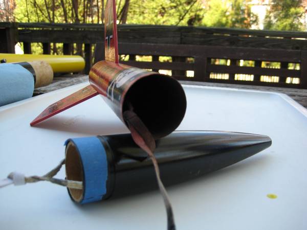 Picture after the motor burn through - also shows the nose cone shock cord attachment