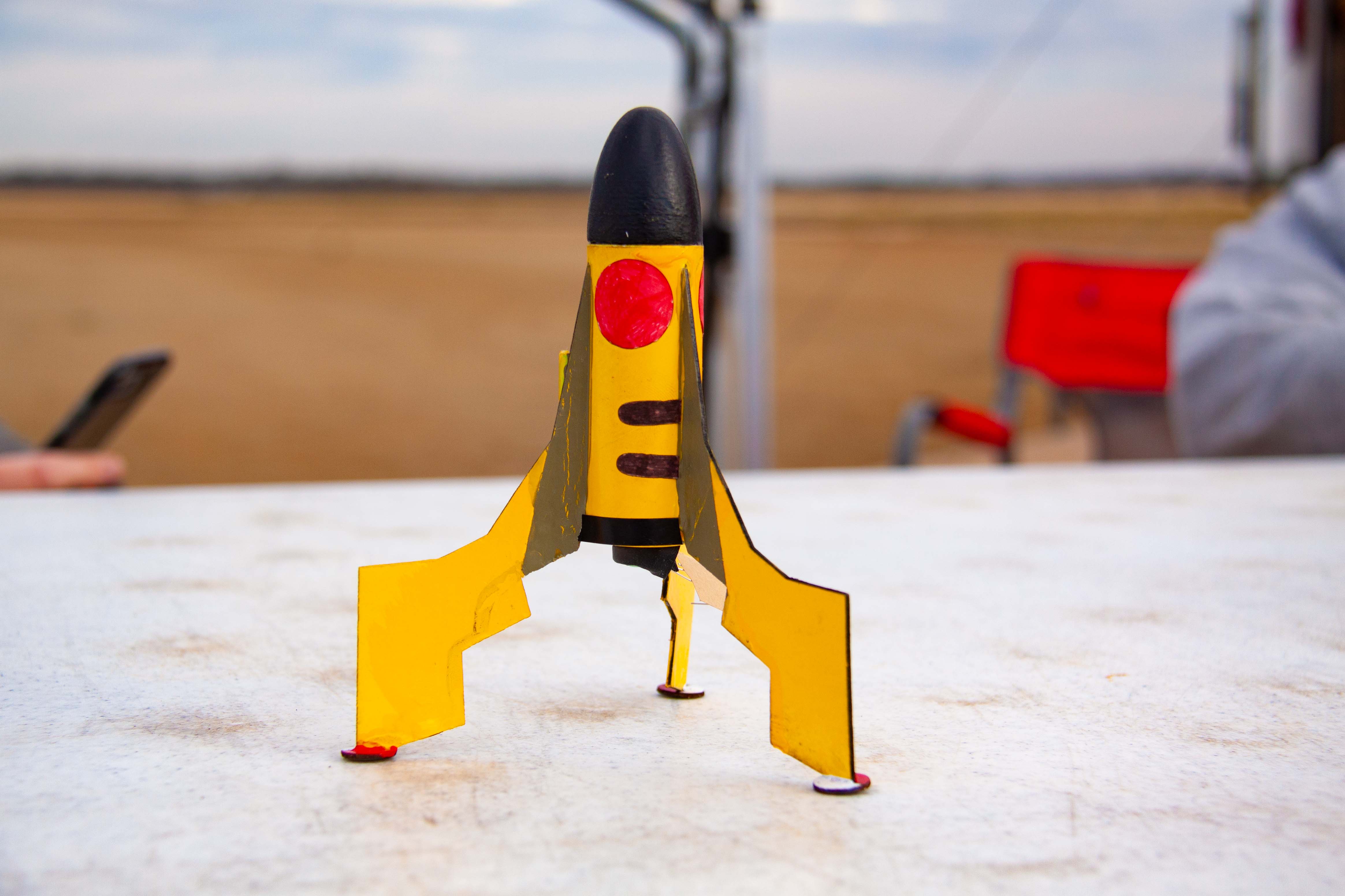 Small, tumble recovery rocket with PETG 3D printed nosecone modeled after the Pokemon character, Pikachu. Fins modeled after Pikachu's tail; body tube and color scheme with Pikachu's colors. Poke balls as landing pads. Inaugural flight for 2023 with ROSCO club in Dalzell, SC.