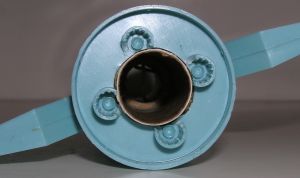 Once you are satisfied with the fit of all the pieces and the tube coupler to each other, remove the coupler and using the centerpiece from a CR-2050, glue this to form a cap onto the coupler to seal one end. You can use some extra glue when working on the nose cone parts to add some extra weight to the upper part of the rocket for stability. I used 5-minute epoxy on most of this assembly.