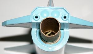 Add a 1/8" x 1" long launch lug to the fuselage about ½" down from the top. Keep it on the round side of the fuselage and just clear of the added fin.