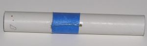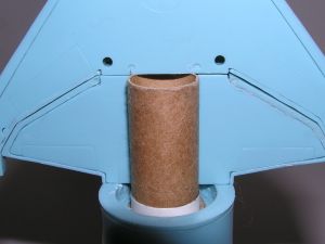 Put the whole thing together again and load an engine as well. Using some string, find the balance point. It should be about 3.5" up from the bottom. Wherever yours is, tape it in place and do a swing test. Add clay to the loose third stage piece if needed to allow the rocket to swing forward properly. When the rocket is balanced properly, finish the assembly by gluing the third stage piece to the others. My rocket did not need any extra weight for stability.