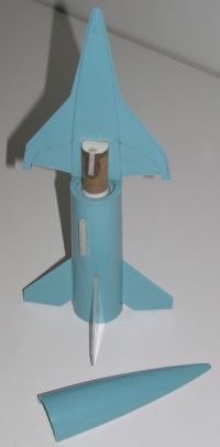 CONs: Tricky addition of the nose cone shoulder. Very small model, easy to lose with too much power. No usable paint scheme to finish kit.