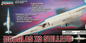 This review describes a plastic model conversion for Lindberg's 1/48 scale Douglas X3 Stiletto. I attempted this project for the 2006 EMRR Challenge and saved it until nearly last because I thought it would be an especially difficult project, however, it turned out to be a cinch even though it's a cluster! My finished rocket is 15.5" long and weighs 2.5oz empty.