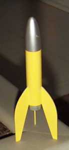 I built this kit in about 30 minutes, not including glue fillet drying time. We painted the first Positron yellow with a silver nose and ring around the motor holder. The swept-back fins achieve the 'retro' look that Doug Pratt was looking for. I rate the kit 5 points (mainly because there were two models in the same bag) and the construction 4 ½ points (I may have added a wrap around fin positioner).