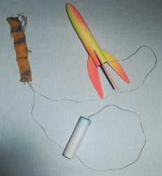 [Pic]The Pratt Hobbies Positron is a small rocket designed to be a 'recoverable' Mosquito (well actually an Astron Streak, the 18mm version of the Mosquito). To achieve this it uses an ejectable motor holder and Nomex® streamer, tied to the rocket body by a Kevlar® line. The kit is complete, and actually comes two to the package. The fins are precut balsa and attach easily to the body tube. The light, plastic nose cone is attached to a shoulder piece of tubing and then glued into the body tube. The shock cord is attached to this shoulder and to the thrust ring in the motor holder tube.