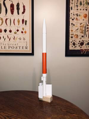 Brief: This is a skill level 2, 18mm motor rocket. Recovery is via an 18" red plastic pre-assembled parachute. This is one of the Classic Series offered by Estes. Construction: The two body tubes are glassine paper tubes. On this kit, the tube spirals were practically non-existent. The fin material was laser cut balsa, and the nose cone was balsa. The instructions were easy ...