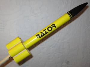 A local hobby shop was going out of business and I bought everything that was left for $100. I figured it to be about $300 worth of stuff. In that, I gained a Custom Razor and since I like tube-fin rockets I went ahead and built this one. This kit is designed as a Skill Level 1 for the beginner and starter. Yes, you build it, but it is not necessary to paint it as it comes with gloss yellow ...