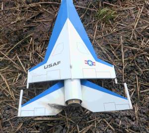 Brief Basically a sci-fi space age version of the USAF Air Force 1 presidential transport Components Good components in the kit. The main body tube looks like it's sized at Estes BT-55, but is actually a little bigger. . Construction This kit went together fairly easily. I got a little impatient when it came time to bevel the angle at the root of the main wings ...