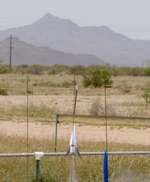 Brief: 1:50 Scale model of the Acceleration Engineering LLC's entry in the X-Prize race. Single stage, parachute recovery. Skill level E2X. Construction: The kit includes: 1 BT-5 engine mount 1 mini engine hook 1 rubber (REAL rubber) shock cord. 1 12" chute clay weight plastic parts: nose cone assembly (2 halves, nose cone cap) body and body ...