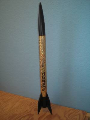 This is a basic single stage, four fin, plastic nosecone rocket. It is a ready to fly kit with minimal assembly which is to attach the parachute and you're done. A pretty basic rocket using standard B and C 18mm rocket engines. Estes item/kit number 002457. The rocket out of the box has two tubes that go together at a coupler joint which is also the separation point for the parachute ...