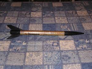 This is a basic single stage, four fin, plastic nosecone rocket. It is a ready to fly kit with minimal assembly which is to attach the parachute and you're done. A pretty basic rocket using standard B and C 18mm rocket engines. Estes item/kit number 002457. The rocket out of the box has two tubes that go together at a coupler joint which is also the separation point for the parachute ...