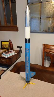 From Quest:  High-Q is a great looking and performing mid-size rocket. Over 30 inches tall, the kit features blowmolded plastic nose cone, laser-cut balsa fins and a rugged 29mm diameter motor mount. Flights with an Aerotech F32-6W will go to almost 3,000 feet. Then your High-Q will recover gently on the big 18" fabric parachute. Includes big, easy-to-apply self adhesive decals. ...