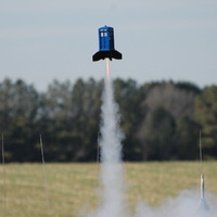 This newest kit from Squirrel Works is simply awesome! It is a very unusual but fantastic kit that sits atop a BT-55 booster. It doesn't grab a lot of altitude on the recommended 24mm D12-3 motor, but it does it in style. Very impressive! It makes an excellent low-flying park rocket with simply beautiful recovery on two big 24-inch red mylar parachutes. The face card in the kit is another ...