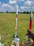 The Custom Rockets S.L.V. is a futuristic rocket kit with three different sizes of body tube, two different card stock tube transitions, and six small fins. The manufacturer lists it as a Skill Level 3, and I feel that it is more of a 2, with a few tricky spots. 1 plastic nosecone with base 1 BT50 2.75" 2 BT20 9" 1 BT20 coupler 1 BT60 3" 1 Engine block for BT20 4 ...