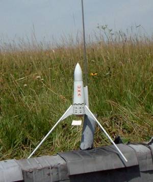 Single stage futuristic rocket. This rocket comes with one short body tube that is just slightly longer than an 18mm engine. It primarily uses 1/8" diameter wooden dowels for fins. I say this due to the fact that you use small balsa pieces for the dowels to lay down on. They would be to small to act as fins however. The rocket comes with a balsa nose cone. This is a fairly easy build. ...