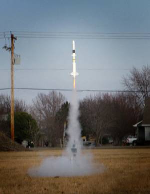 (by Doyle Tatum) When I purchased the rocket I thought it was a scale model model, but in actuality it is a Launch Pad Original design. It is a single D motor design with large fins and a boat-tail. I coated the paper boat-tail, inside and out, with 20 minute finish epoxy - which has made it very strong. Also, I sealed the fins with several coats of the same epoxy. This made them ...