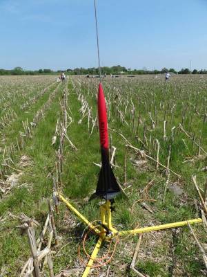A stylish yet standard three fins and a nose cone rocket for 29mm and smaller motors. Heavy body tube and rakish plywood fins make for a tough and fun to fly rocket. The kit was neatly packaged in the standard clear plastic bag, with the motor tube floating around in the airframe tube, and a nylon chute, pre-cut plywood fins, rings, and launch lug inside a zip-lock bag. The fins are ...