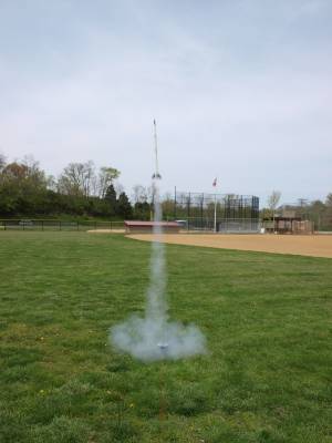 The Apollo is a scale-look sport payloader. The Apollo comes with three of Quest's nice white glassine body tubes, a motor mount assembly, some Kevlar thread, and an assortment of plastic pieces- nose cone, two transitions, four fins, and two special rings that mount the fins OUTSIDE the body tube. I was not pleased to see that there was no elastic shock cord material... more on that later. ...