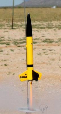 Brief: OOP for many years, a single Stage, light streamer recovery, D engine mount, 4FNC rocket. This kit was provided as a free bonus by Estes if an order exceeded a certain amount. one BT-55 body tube, balsa nosecone, 4 balsa fins from BFS-40 fin stock (fins cut from a provided pattern, not pre-cut most of the way like they are now), D engine mount, crepe paper streamer and rubber shock ...