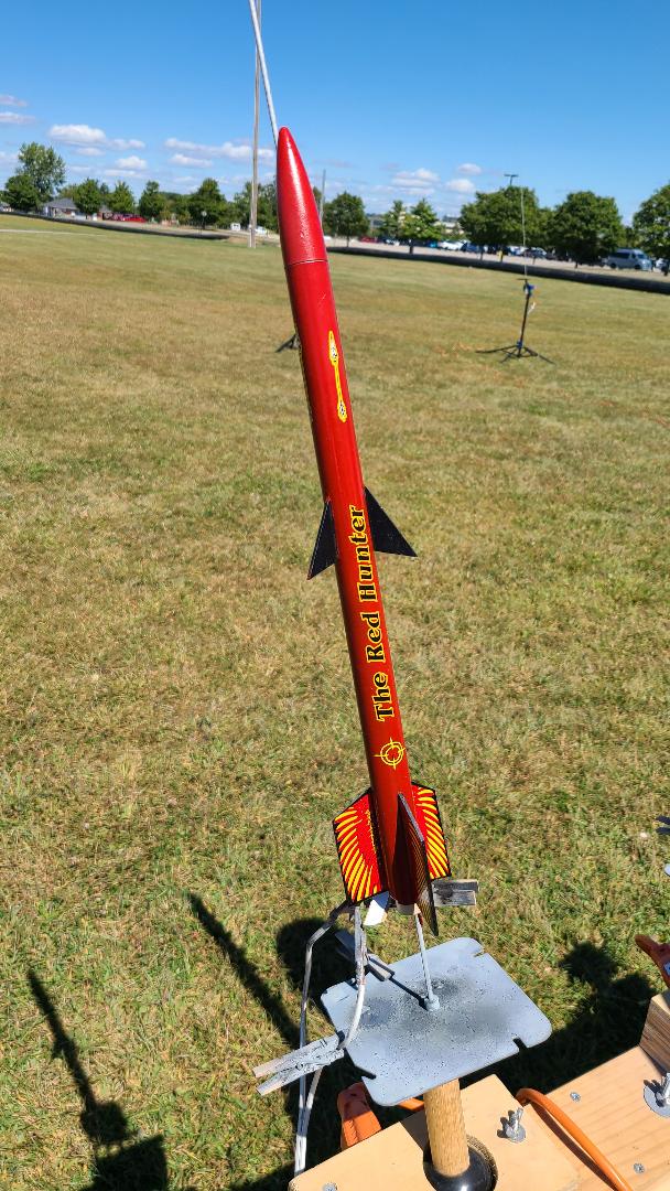 The Red Hunter is a 20" tall Flying Model Rocket from SureFire Rockets. Featuring pre-cut balsa fins and 12" parachute recovery, This rocket reaches over 1,100 feet hight!! This is a Rocket Skill Level 1 model rocket kit for Ages 10 and older. Adult supervision required for those under 12.