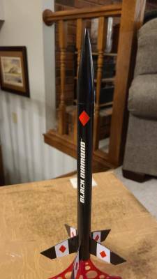The Black Diamond is a renamed Estes Viking rocket that is packaged along with the "Launchables" (1452) Starter set. The set also includes an E2X (easy to build) rocket called the Astron Outlaw, so that beginners can learn the basics before building the Black Diamond. The Black Diamond offers multiple fin configurations by providing five fins cut with dies on cardstock. They can be ...
